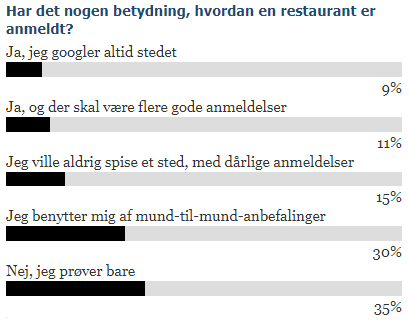 Undersøgelser viser også, at selvom folk, som har haft en dårlig oplevelse på en restaurant, er hurtige til at fortælle om den online, så er det kun én ud af 10, som vælger at dele en positiv erfaring.