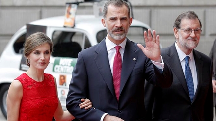 Kong Felipe VI ankommer til Parlamentet ledsaget af Dromnning Letiza og Premierminister Mariano Rajoy