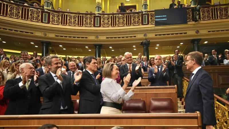 Den fungerende premierminister Pedro Sánchez ignorerede Alberto Feijóos henvendelser og blev siddende på sin plads.