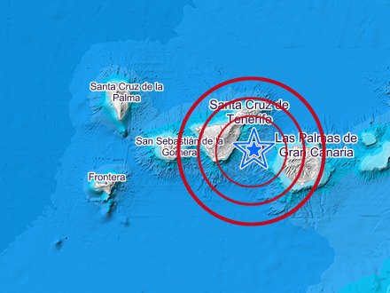 Det største skælv i området mellem Tenerife og Gran Canaria fandt sted den 9. maj 1989 og målte 5,2.