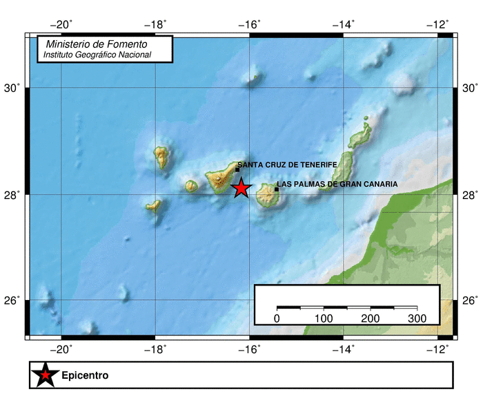 Den er placeret cirka midt mellem Tenerife og Gran Canaria, og rystelserne blev da også mærket hos folk på begge øer.