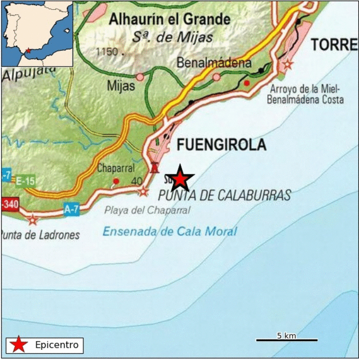 Onsdag aften blev der registreret et lille jordskælv i farvandet ud for den populære turistby Fuengirola.