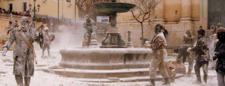 Traditionen går tilbage til 1909 i området ved byen Elche i Alicante Provinsen. Vindruedyrkerne havde haft så god en høst, at de ikke kunne sælge det hele, og de var bange for at brænde inde med rådne druer.