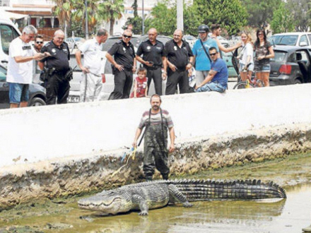 En buschauffør, der normalt kører ruten langs Avenida Juan Carlos I, blev bedt af passagererne om at stoppe, så de kunne se nærmere på krybdyret.