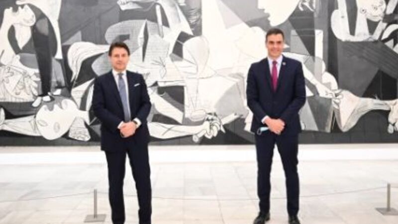 Onsdag eftermiddag mødtes Pedro Sánchez med Italiens premierminister Giuseppe Conte til en pressekonference på Reina Sofia Museet i Madrid.