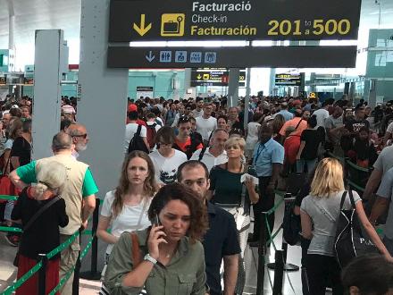 Der var igen i går lang kø i både Terminal 1 og Terminal 2 i Barcelonas internationale ludthavn, El Prat, som er ramt af de punktstrejker.