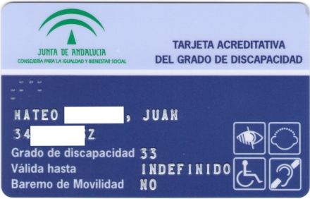 For en handicappet med bopæl i Andalusien kan det være en fordel først at søge om et kort, der viser graden af ens handicap - Tarjeta acreditativa del grado de discapacidad - der giver andre fordele. Når man først har det - og været gennem papirmøllen - er det enklere at få P-kortet.