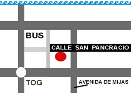 Adressen er Calle San Pancracio, der er parallelgaden mellem tog- og busstationen i enden nærmest Avenida de Mijas