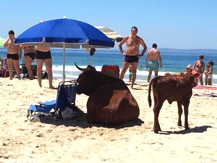Det er slet ikke usædvanligt, at kvæg besøger Bolonia-stranden