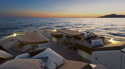 Den luksuriøse Monte Carlo-yacht er blevet døbt Beethoven og er lavet af den franske virksomhed Beneteau i Montefalcone i Italien. Det er en af de bedst-sælgende modeller.