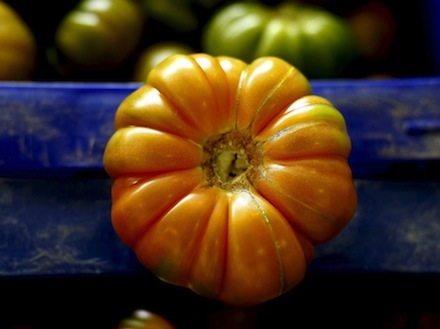 Køberne kommer fra omkring 20 forskellige restauranter, der byder på de første 50 kilo tomater fra det lokale kooperativ.