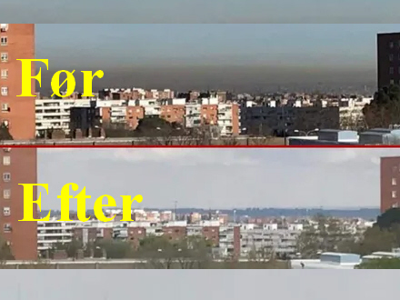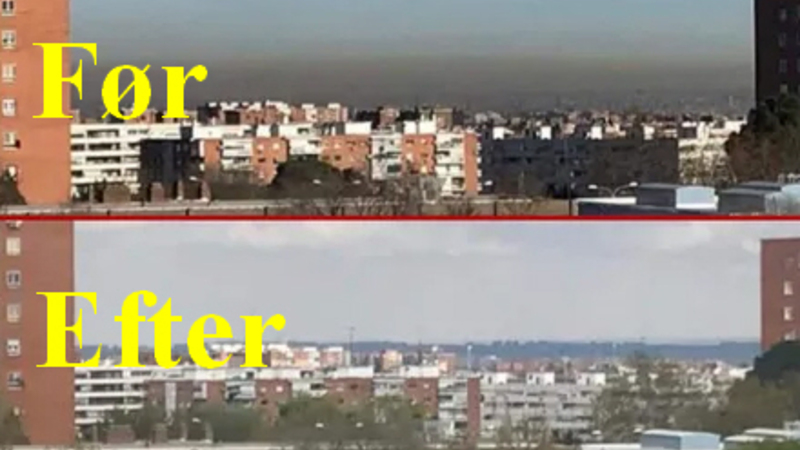 CORONA: Selvom vi ikke må gå ud, kan vi åbne et vindue og tage en dyb indånding - selv i storbyerne. Madrid oplever lige nu rekordlave nitrogendioxid-niveauer.