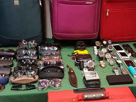 Der var 34 kufferter, 11 computere, rygsække, rejsetasker, ure, mobiler, kameraer og bunkevis af solbriller.