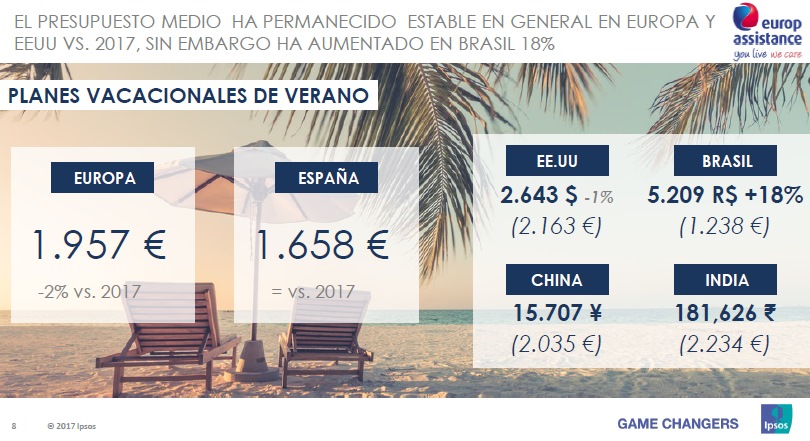 61 procent af spanierne siger, at de vil tage på ferie denne sommer, hvilket er tre procent flere end i 2017. Men de vil bruge 1.658 euro på ferien, hvilket er det samme som sidste år. Gennemsnittet for feriebudgettet i Europa lyder på 1.957 euro .