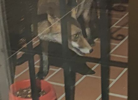 Dog ved vi, at vi stadigvæk får besøg af en ræv, der har fået smag for kattemad og spiser her morgen og aften.