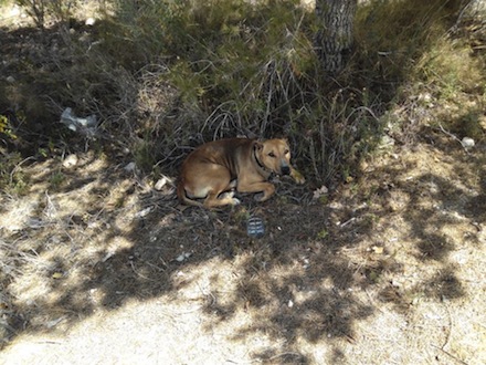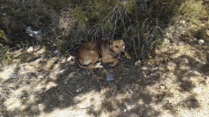 Hunden blev imod alle odds fundet lænket til et træ i Calp ved en vej, der ikke er særligt befærdet. Folkene fra dyrebeskyttelsestjenesten siger, at hun var bange og urolig.