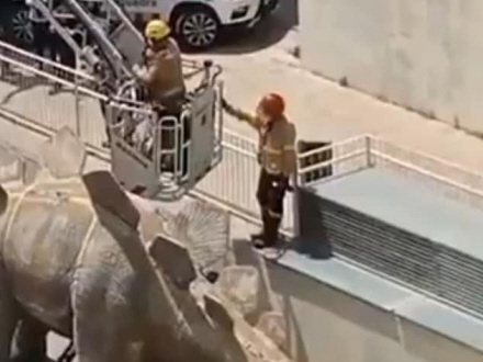 Tre hold fra brandvæsenet blev sendt i aktion, og de måtte lave et hul i dinosauren for at få liget ud.