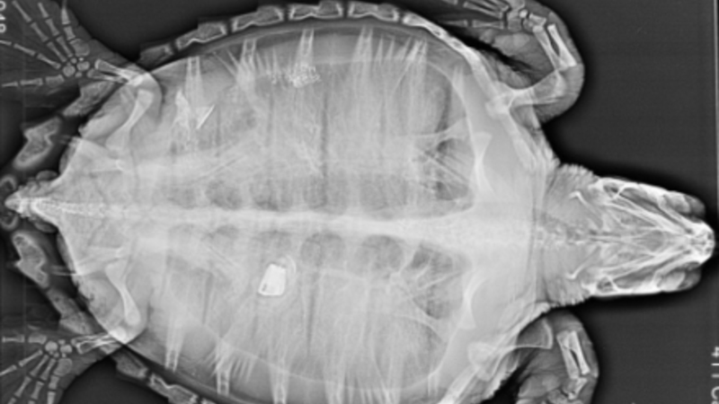 Dyrlægerne hos akvariet gjorde store øjne, da de gav skildpadden en ultralydsscanning og så, hvad der lå og rumsterede i dens tarm.
