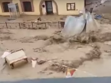 Una fuerte #riada tras intensas lluvias y desbordamiento del arroyo #Sangüesa que arrastró todo a su paso.