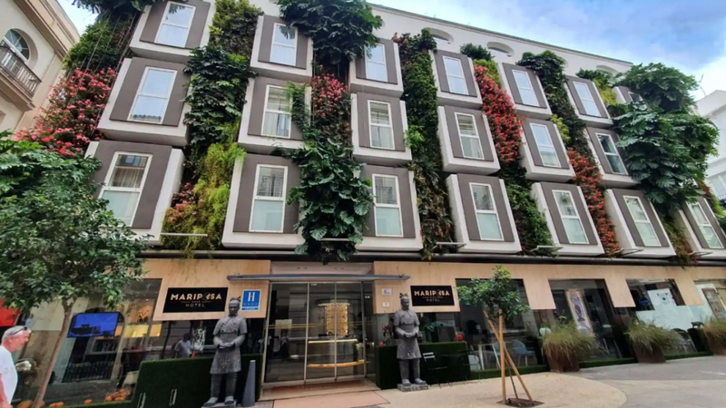 Hotel Mariposa i Málaga har man fundet ud af at vande planterne med genbrugsvand fra badeværelsernes brusere.