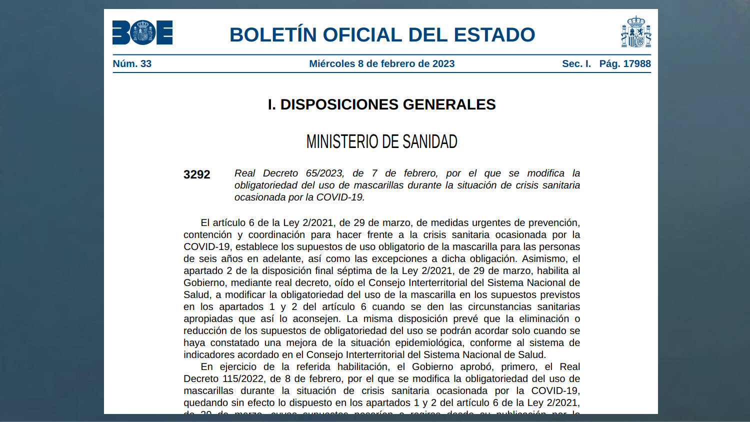 Lovdekretet for maskebrug i Spanien pr. den 8. februar 2022