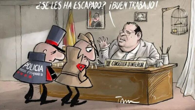 Klokken 09:06 torsdag morgen afsluttede Carles Puigdemont sin tale til sine tilhængere ved triumfbuen i Barcelona. Den tidligere præsident, som har været på flugt i syv år, afsluttede sin tale og forlod scenen i en fart ad bagvejen. Sammen med ham gik Gonzalo Boye, Puigdemonts advokat, og et andet medlem af det juridiske team, begge iført kasketter.