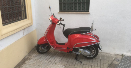 Vi så flere, ildrøde vespa-scootere undervejs.