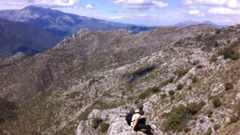 Bjergtoppen La Concha ligger også i Sierra de las Nieves - man kan ane Gibraltar og Afrika i horisonten