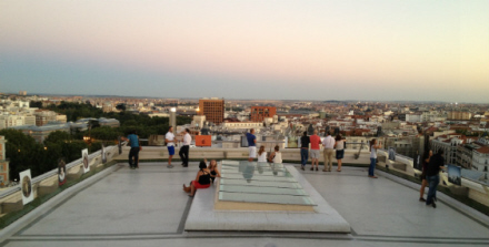 Her kan du nyde en panoramaudsigt over hovedstaden og se det hele, lige fra spidserne af byens kulturelle seværdigheder til de sneklædte tinder af Sierra de Guadarrama i det fjerne, eller kast blikket ned på de farverige terrasser i kvarteret El Barrio de las Letras nedenfor.