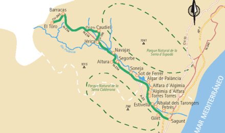 Ruten følger floden Palancia på strækningen gennem naturparken Parque Natural de la Sierra de Espadán og La Sierra Calderona.