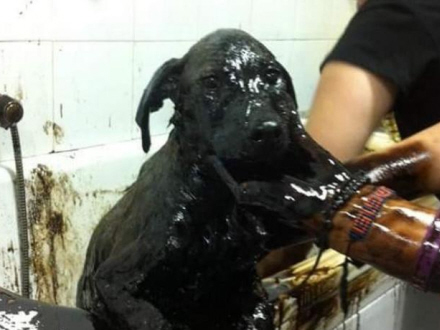 VIDEO: Søndag smed ukendte gerningsmænd tre hundehvalpe ned i en tjæretank på en mark i Murcia til en langsom og pinefuld død. Men to hvalpe havde andre planer.