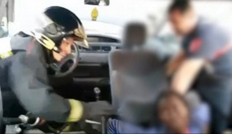 Brandmændene måtte bruge en elektrisk sav og andre værktøjer til at få migranter ud, som alle var i dårlig stand og havde brug for medicinsk assistance.