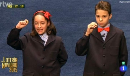 Klokken 9.09 gjorde eleverne fra San Ildefonso-skolen deres entré på Det kongelige Teaters scene. Ni piger og 12 drenge har traditionen tro opgaven med at synge numrene og de præmier, der trækkes til det pågældende nummer. Klokken 9:16 startede lodtrækningen.