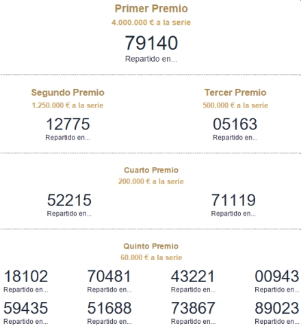 De nævnte præmier er for et ‘helt nummer’, som har kostet 200 euro. Men alle numrene sælges som ‘décimos’ - tiendedele og har derfor kostet 20 euro.