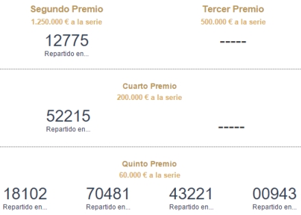 I næsten samme minut faldt andenpræmien på de 1,25 millioner euro, der giver 125 euro pr. décimo.