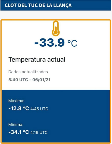 Helt konkret kom man ned på 34 minusgrader på en skistationen Valls d'Anéu Meteo i Clot del Tuc de la Llança, der ligger i de catalanske Pyrenæer nær grænsen til Frankrig.