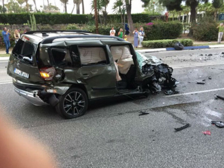 VANVIDSKØRSEL I MARBELLA: Nyfødt baby klarede voldsomt uheld mod alle odds. Mor blev hårdt kvæstet i kollision med påvirkede flugtbilister.