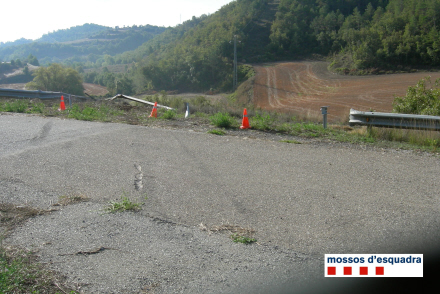 Og det gav bonus. På vejen C-1412a ved kilometer 31,5 i Calonge de Segarra Kommune opdagede man, at autoværnet var brudt. 30 meter nede under vejen så politiet en lille rød bil.