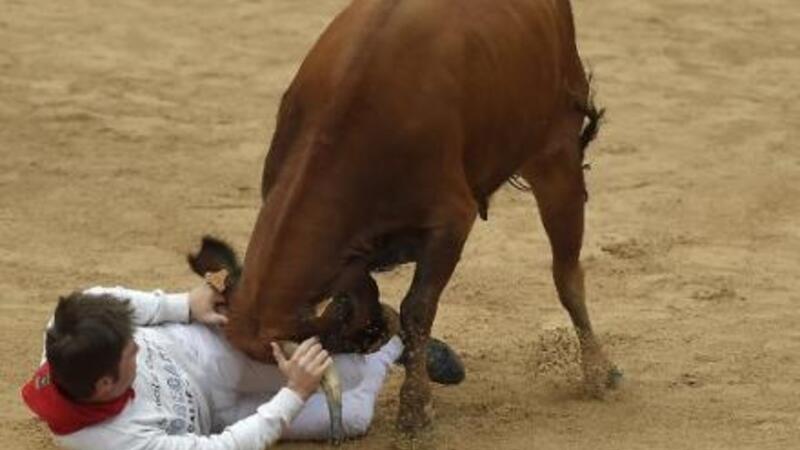 På den første dag ved en af landets mest kendte tyretraditioner blev én stanget alvorligt, og fire andre blev kvæstet i tyreløbet.