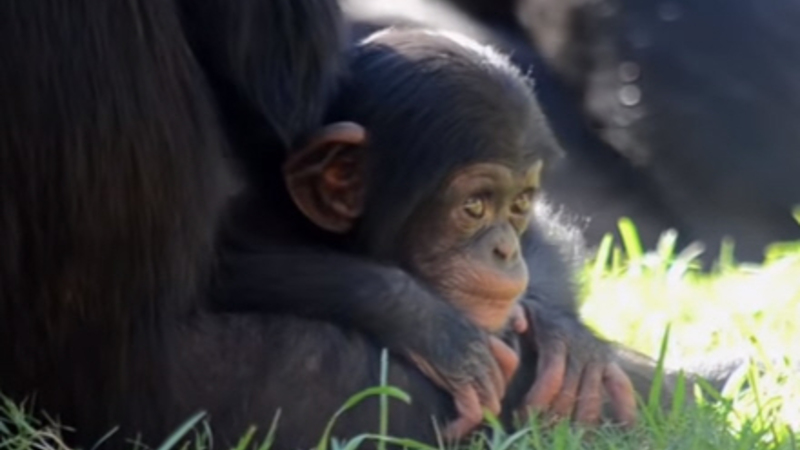 VIDEO: Tre måneder gammel chimpanse tager sine første små skridt i Valencias “afrikanske jungle”.