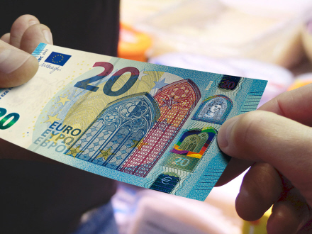 Men vi kommer nok til at bemærke udskiftningen af 20'eren mest, at det er den mest anvendte seddel i hele Europa.