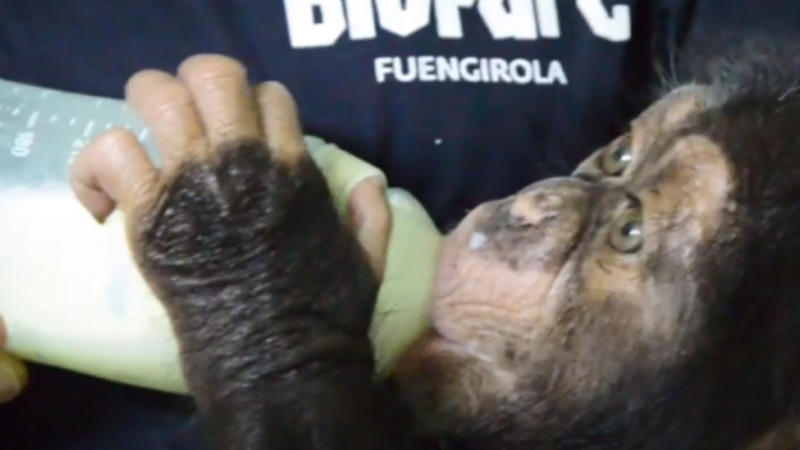VIDEO: Lille, nuttet chimpanseunge vandt aldrig sin mors hjerte, men nu har han endelig fået en ny familie i Valencia.