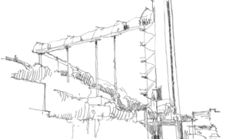På den ene side selve strukturen med en elevator, hvor man kan se ud hele vejen rundt. Kabinerne bliver lukkede, men delvist med glas og med plads til otte personer i hver.
