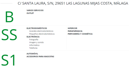 Cafetería Lorena, Salvador Bakery, posthuset, frisørsalon og El Corte Inglés' selektive parfumeri er også der.