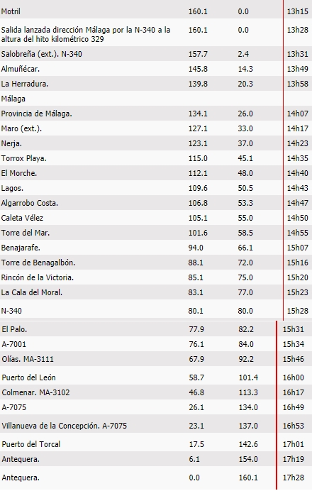 Ruten følger kysten gennem Granada provinsen, inden den når Málaga provinsen mellem Nerja og Almuñecar.