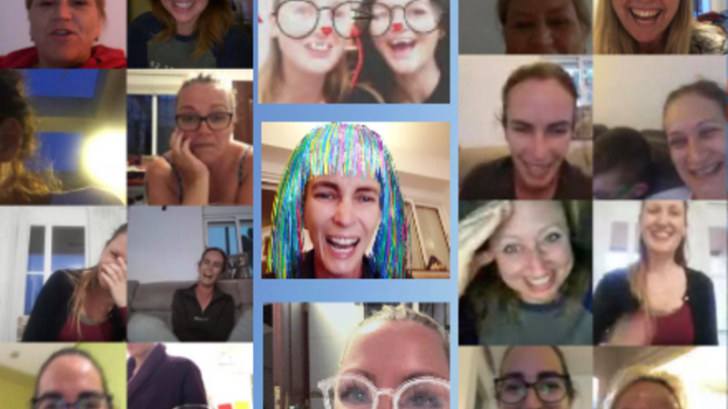 Et enkelt tryk på telefonrørs-ikonet, og pludselig var de otte veninder samlet.