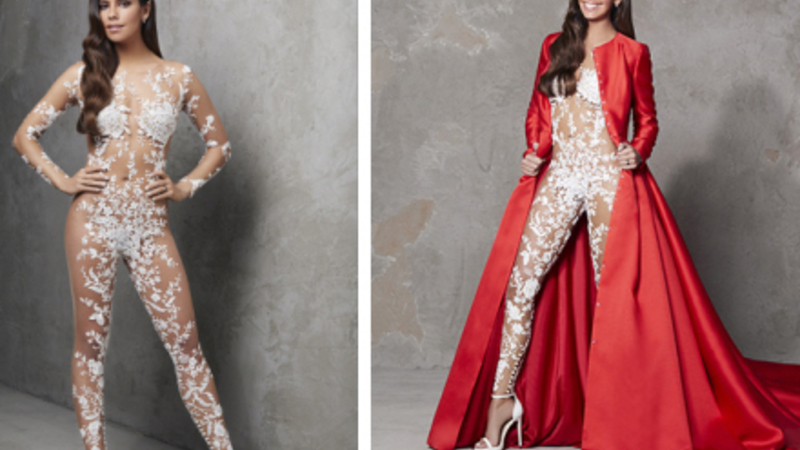Kjolen er en slags “body” med lange ærmer og slæb lavet af tyl og broderi. Og det havde taget 244 timer at brodere den specielt til stjernen.