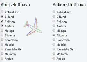 Vær opmærksom på, at selvom vi vælger en afrejselufthavn i Danmark, inkluderer den også en retur fra Spanien, da vi forudsætter, at enhver udrejse også har en hjemrejse omend på forskellige tidspunkter.