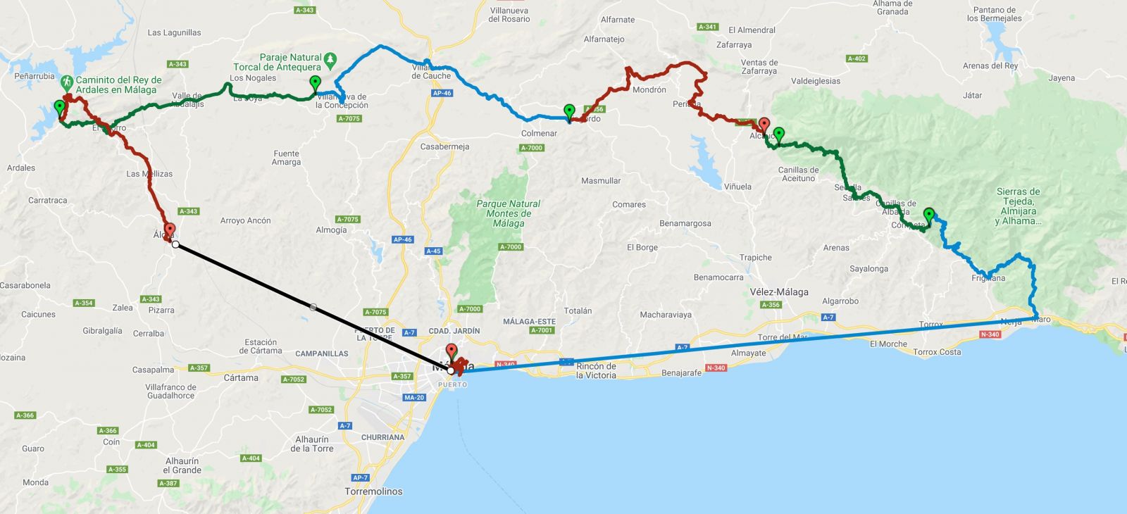 Ruten var ikke fastlagt på forhånd, men i grove træk fulgte jeg en kombination af de fint afmærkede langdistance-ruter GR-249 og GR-7, guidebogen Cicerones 'Andalucian Coast to Coast'-rute samt en del ad hoc-freestyling her og der.