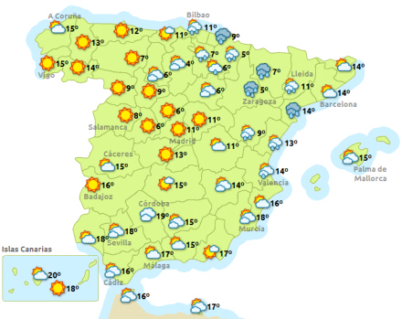 eltiempo24.es er et af ganske få steder, der vover at spå om vejret i Spanien lidt længere ud i fremtiden end blot nogle dage, og Picazo har lavet en prognose for de næste 16 dage.